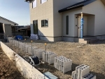 新築外構工事 着工!!新居浜・・・住まいるガーデン こんにちは。あと今年も残すところ、1か月半になりましたね。11月とはいえ、日中はまだ暑いですね。今回は新築工事の外構が始まりましたので、ご紹介させて頂きますね。駐車できるスペースも多く確保し、また南側には人工芝敷きを行い家族が楽しく団らんできる外構プランです。初日は擁壁にアンカーを打ち、コンクリートブロックを配っていく作業を行いました。来週からの工事の進捗が楽しみですね。 <完成イメージ 平面図> <完成イメージ パーツ>