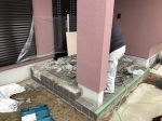 玄関アプローチ工事 新居浜・・・住まいるガーデン こんにちは。もう少しでお祭りですね。週末には自治会や太鼓台関係者の動きも忙しくなってきていますね。今回は、玄関ポーチや玄関へのアプローチの改修を行いましたのでご紹介させて頂きますね。まずは、経年劣化で傷んだ玄関タイルを剥がしていきます。既存タイルの徹去後、下地を調整していきました。アプローチには東洋工業製の「マレアストーン」を施工しました。和風なお住まいにもいい感じでマッチしていると思います。