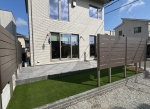 視線を気にせず家族で過ごす。隣地拡張で手に入れた「緑の絨毯」がある暮らし・たつの市外構リフォーム 手間なく楽しむ、広々人工芝の中庭。〇メンテナンスフリーの贅沢。広大な人工芝が繋ぐ、二世帯の新しい風景旗竿地の二世帯住宅。隣地購入を機に、中庭の拡張とゆとりある駐車空間を実現する外構リノベーションです。広大なスペースの主役は、一面に美しく広がる人工芝。「広い庭は憧れるけれど、草むしりや手入れが大変…」という懸念を払拭し、年中変わらない鮮やかな緑をメンテナンスフリーで楽しめます。高品質な人工芝【メモリーターフ】を丁寧に施工することで、二世帯のご家族が素足で走り回れるような、柔らかく安心な空間に仕上げました。プラン・打ち合わせ・施工管理担当:植田1級エクステリアプランナー登録番号28-1EX-0026 ご提案パースBefore|After〇メンテナンスフリーだから、家族時間が広がる庭草むしりや水やりの手間がないメンテナンスフリーの人工芝の中庭は、365日美しい緑をキープ。泥汚れの心配もなく、お子様の遊び場や二世帯で集う広場としても快適です。〇施工中クラッシャーランを転圧して強固な下地をつくり、その上に真砂土を丁寧に整地して再度転圧することで、お子様安心して遊んでいただけます。歩くたびにほどよい弾力を感じる快適な踏み心地を実現します。〇施工中整地が完了した土台の上に、防草シートを敷設。人工芝の下に、透水性が高く、それでいて日光を遮断する高密度の防草シートを隙間なく敷き詰めます。シートの継ぎ… | ![]() |