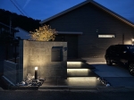 | 姫路市新築外構・フロート階段とセラレバンテ門柱で魅せる平屋の門まわり フロート階段&ラインライトで夜も絶景! 建物の計画段階からご相談をいただき、今回はファサードを中心とした1期工事です。アセンブルガーデンがおすすめしている『計画は早め、工事はお引越し後』で、まずは外構全体をトータルプランニングし、『ガーデンライフプラン』に沿って、計画的に1期工事を実行させていただきました。門まわりには重厚感のある【セラレバンテタイル】を使用した門柱を設け、ポスト&宅配ボックス【ヴィコDB】をスマートに配置。アプローチにはフロート階段を採用し、【シンプルラインライト】で足元をやさしく照らすことで、昼夜問わず上質な雰囲気を演出しています。イロハモミジやクラッシュロックを配した植栽スペースもアクセントとなり、玄関まわりに彩りを添えています。道路からの視線もさりげなくカット。角地は視線が気になりやすく、ゾーニングにも工夫が必要です。さらに平屋は玄関アプローチを広く取ることでダイナミックな演出が可能です。今後はカーポートや中庭スペースの施工を予定しており、2期工事以降でさらに快適で魅力的なお庭へとグレードアップしていきます。プラン・打ち合わせ・施工管理担当:植田1級エクステリアプランナー登録番号28-1EX-0026 ご提案パースBefore|After着工前建築工事では玄関ポーチは最小限で。完工門まわりから続く広々フロート階段のアプローチBefore|After着工前玄関… |  |
