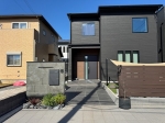 姫路市新築外構・ワイドに仕上げたフロート階段とセラレバンテタイル門柱 重厚感のあるオリジナル門柱が玄関を引き締める 建物建築中からご相談いただき、建物のデザインと調和させながらシンプルかつ印象的に仕上げた門まわりです。門柱にはブラックカラーの【セラレバンテタイル】を使用。広く取った外構施工の玄関ポーチとバランスが取れるワイドなオリジナル門柱は、前面道路からリビング掃出し窓への目線カットとしても機能しています。表札は美濃クラフト【アートライン】をセレクト。細部まで洗練された印象に仕上げました。足元のクラッシュロックと植栽が彩りを加えています。玄関ポーチにはアイコット600角【アーレイ】タイルを採用し、ゆったりとしたフロート階段仕様に。よく目にする正方形や長方形の玄関ポーチではなく、玄関奥の中庭ガーデンテラスへ繋げ、広がりある空間を演出しました。フロート階段の蹴上部には【リクシル・シンプルラインライト】を組み込み、夜には柔らかな光が浮かび上がる上品なアプローチをデザイン。タイルの質感と照明のラインが、スタイリッシュな外観にマッチしています。宅配ボックスは【tumiki】シリーズ(ポスト+セミラージ+ラージ)を採用し、門柱背面にレイアウト。防犯面に考慮しながら正面からの見た目をすっきり保ち、存在感が出すぎない工夫を施しました。タイルのグレーと外壁のブラックを基調に、全体をモノトーンでまとめたシンプルモダンな門まわり。昼と夜で表情を変える上質で機能的なエント… | ![]() |